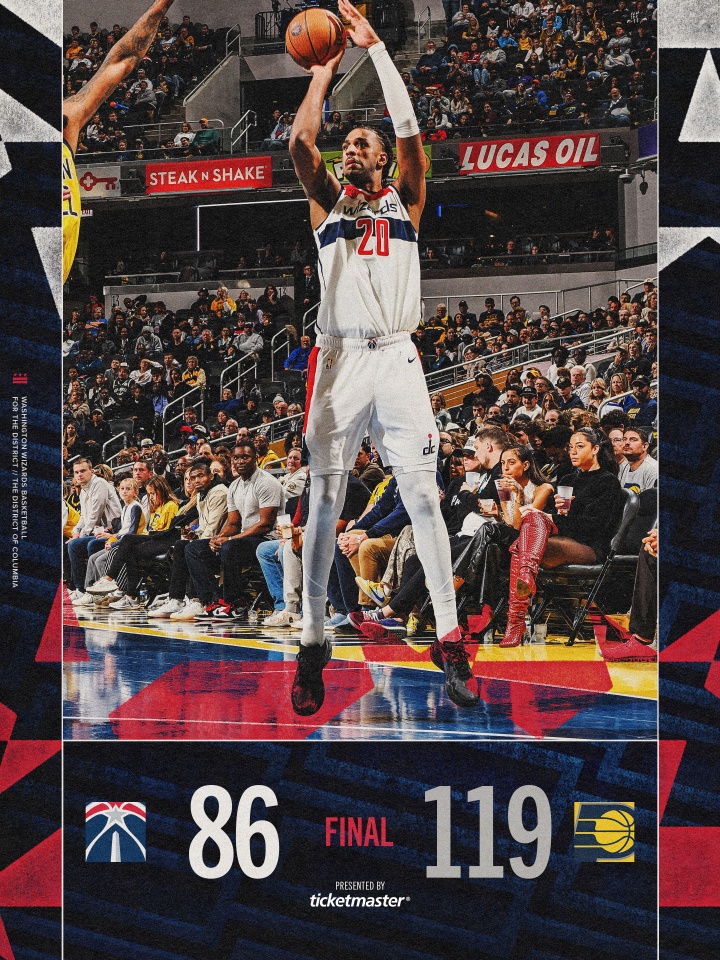 联盟副班长之争!奇才狂输步行者33分 重新“夺回”倒数第一