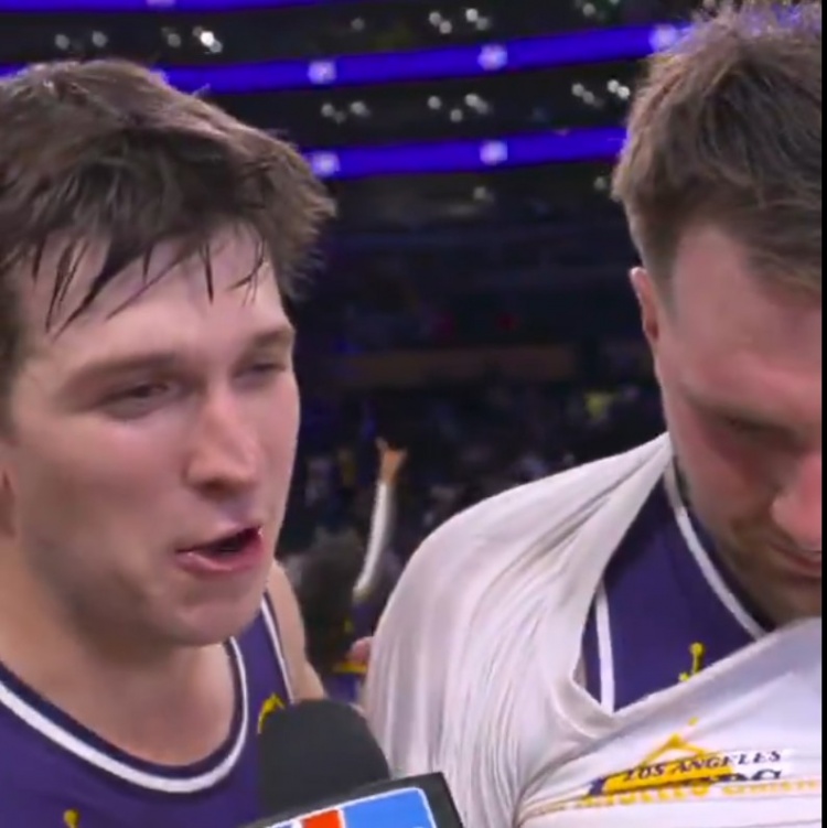 11月29日讯 NBA杯小组赛,湖人129-119力克独行侠。赛后东契奇接受采访时里夫斯抢镜:“我现在扣篮次数比他多。”东契奇:“是的,但是他不想防守啊。”此役,东契奇出战40分钟18投10中,三分9中4、罚球11中11砍下35分5板11助1盖帽;里夫斯上阵41分19秒15投12中,三分8中6、罚球9中8,狂砍38分8篮板3助攻。