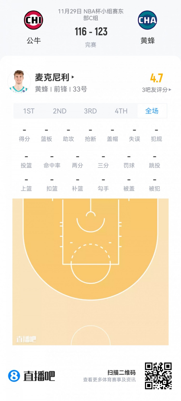 黄蜂首轮4号秀康·尼克佩尔 登场31.7分钟