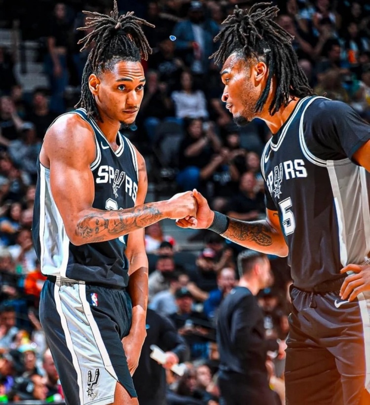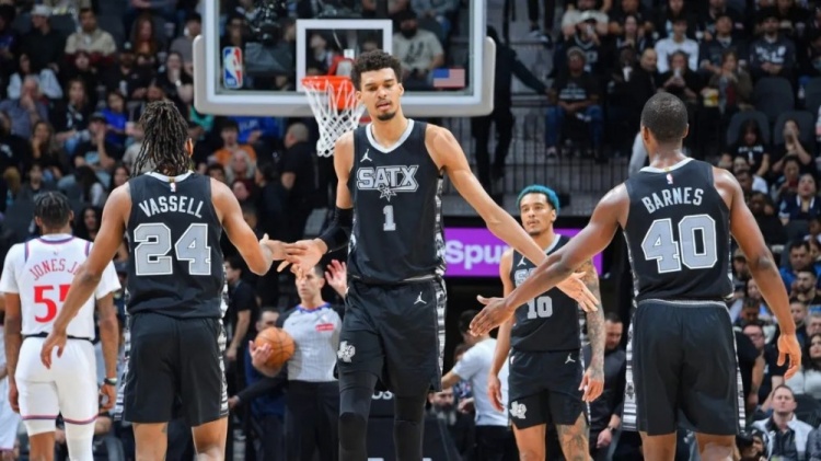要聊这支马刺,你永远绕不开文班亚马,就像聊三分球绕不开库里一样。经过两年进化和少林特训,22岁的文班已显现出超巨之姿,场均26分12篮板4助攻3.6盖帽,真实命中率61%。开赛前五场更是轰出了30分15篮板5盖帽的场均数据,带领马刺豪取五连胜,把仗着内线深度试图单防文班的独行侠打出33分分差,让所有球队都不敢单防。