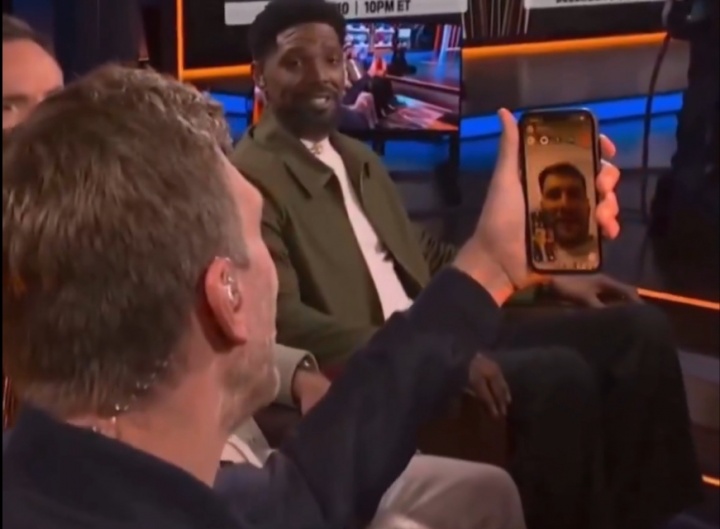 11月30日讯 昨日NBA杯小组赛,湖人129-119力克独行侠。NBA名宿德克·诺维斯基因错过了东契奇所拔打的视频电话,不得不在节目中进行回拔(如图)。他在电话中打趣道:“今晚你表现的不够好,所以我们要去采访里夫斯了。抱歉了,我的朋友。”此役,湖人当家球星卢卡·东契奇出战40分钟18投10中,三分9中4、罚球11中11砍下35分5板11助1盖帽;里夫斯出战41分19秒15投12中,三分8中6、罚球9中8,狂砍38分8篮板3助攻。