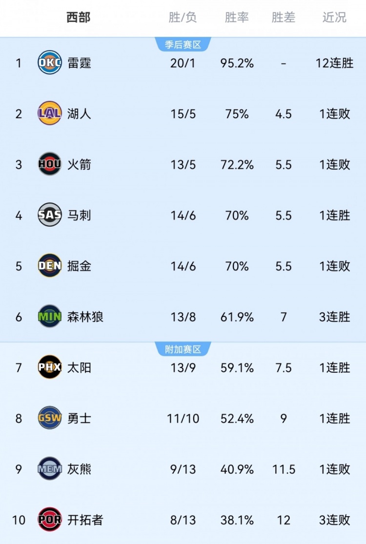 此役过后,马刺战绩来到14胜6负,暂列西部第4位。