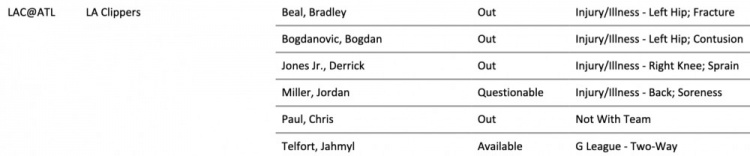 离谱到家了真是!快船伤病报告:保罗缺阵 原因是未随队