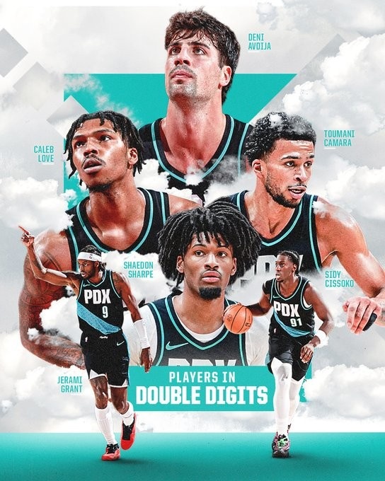 全民皆兵!开拓者赛后发布六人得分上双、三人20+海报