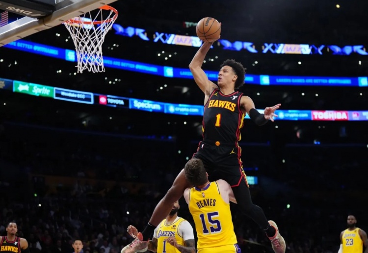 说起来也奇怪,老鹰队的这套阵容本来是以特雷-杨为核心搭建的,结果亚历山大-沃克反倒是成了杰伦-约翰逊最好的拍档,杰伦-约翰逊每场有30%的传球都传到了沃克手上,而沃克也以精英级别的投射水准和高质量的防守施压为杰伦-约翰逊在攻防两端提供了最可靠的支援,场均得分从上赛季在森林狼队的9.4分直线飙升到了惊人20.4分!