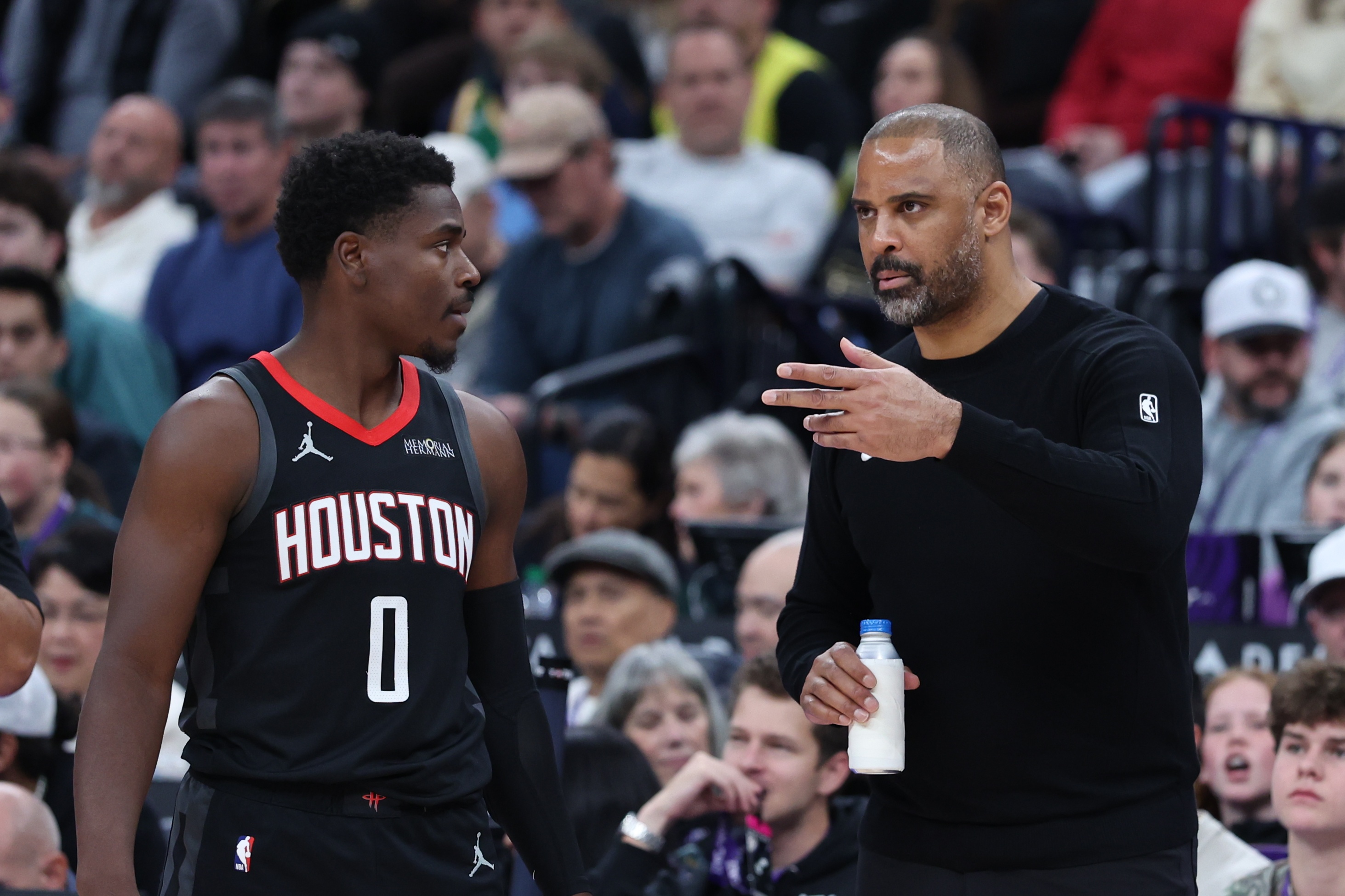 杜兰特、阿门、史密斯、奥科吉的对位防守都让国王头疼,并且国王内线尤班克斯和雷诺都没有稳定的攻坚能力能惩罚申京/海王,火箭还可以无限放空威少,轻松掐住了国王的整体进攻。除了扛着炸药包往里杀,国王没有好办法破解火箭的顶级换防,杀入篮下就被火箭的高塔群请吃大火锅。