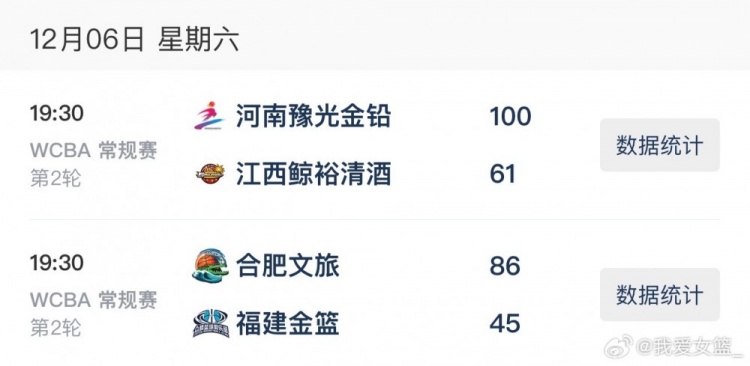 【WCBA今日综述:河南、合肥继续收获大胜】2025-2026赛季WCBA常规赛今日精彩继续,其中河南女篮和合肥女篮继续取得大胜,两队均取得连胜。河南豫光金铅100-61江西鲸裕清酒,沃克独得20分10篮板,斯塔福德16分6篮板,马文16分。江西女篮张瀞丹11分,赵方欣、杨珂菁各得10分。合肥文旅86-45福建金篮,纳雷德独得22分9篮板,约翰逊15分,卡耶14分9篮板。福建女篮徐婷婷、谭如梦各得12分。