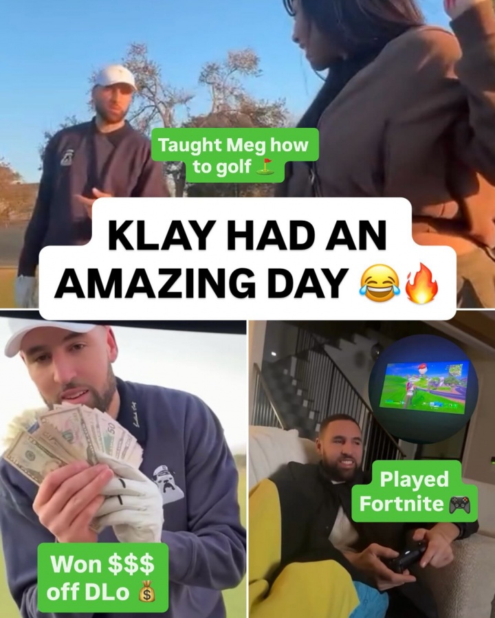 克莱度过了男人能想到的最完美的一天:带女友打球(教马冬梅打高尔夫)、薅队友羊毛(赌球赢了拉塞尔一点小钱)、打电子游戏(躺沙发上玩堡垒之夜)。