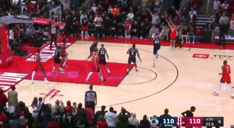 本场比赛,火箭球员谢泼德替补出战26分钟,9中4,三分5中2拿到10分4篮板2助攻1盖帽,正负值+6。最后时刻比分110平时,谢泼德右侧大空位三分不中。