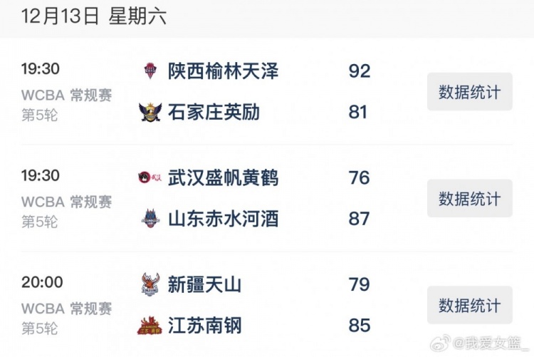 陕西榆林天泽92-81石家庄英励,库克斯狂砍40分17篮板,卡尔霍恩20分9篮板9助攻,国内球员无人得分上双。石家庄女篮王丽丽空砍28分10篮板8助攻,戴维斯25分8篮板,彭晓彤14分7助攻。