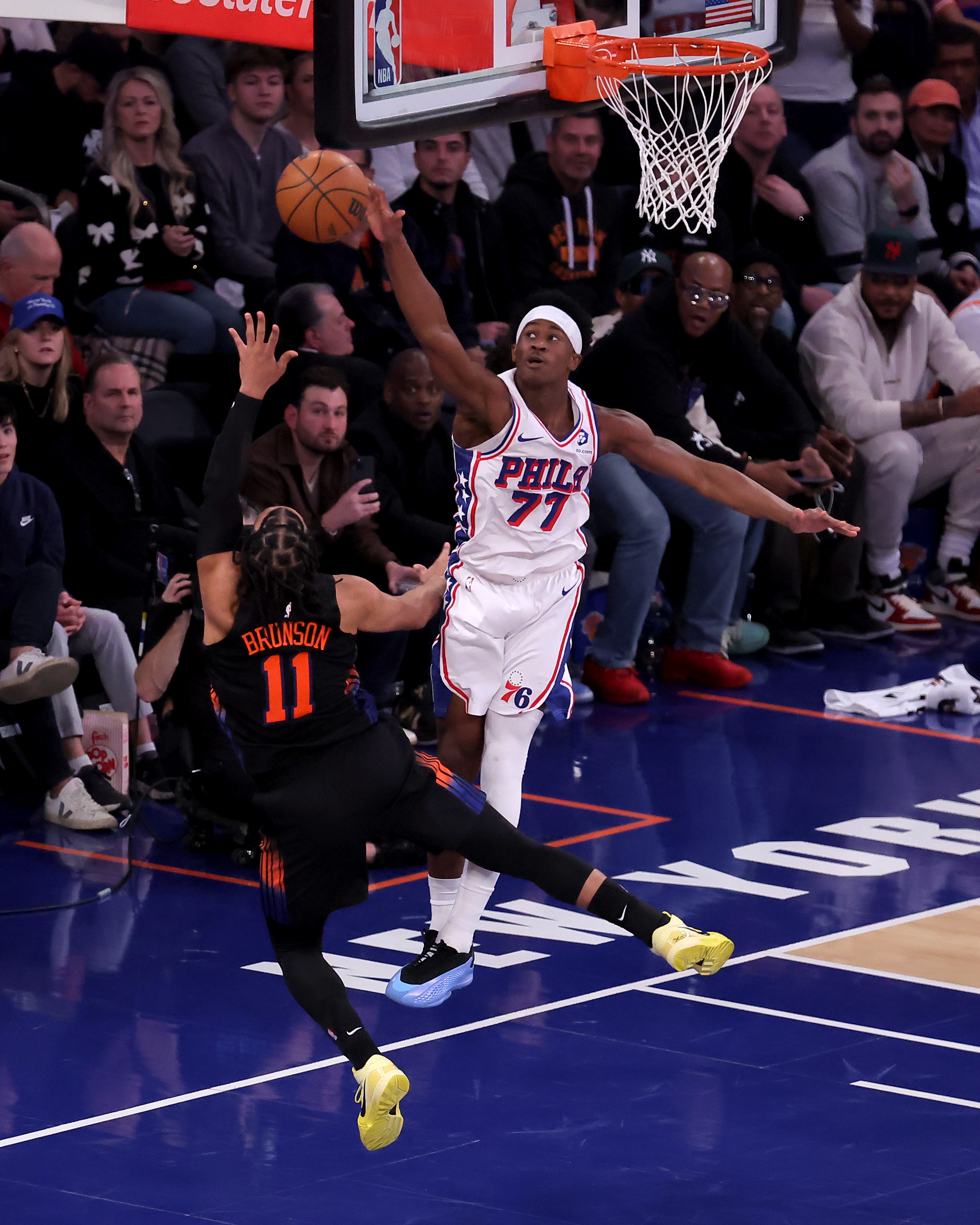 本场比赛,76人探花秀埃奇库姆发挥出色,防守端各种缠绕布伦森,令对手22中7;进攻端关键时刻中投、三分、补扣连续刷屏,助队锁定胜局。