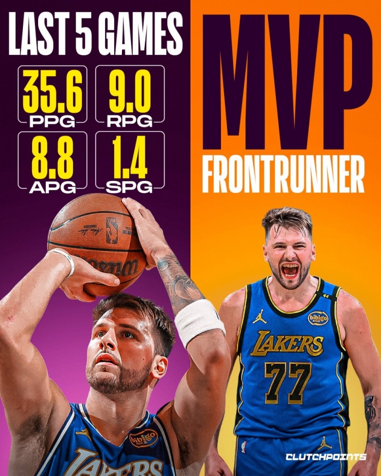 在过去的五场比赛中,卢卡·东契奇堪称无可争议的MVP