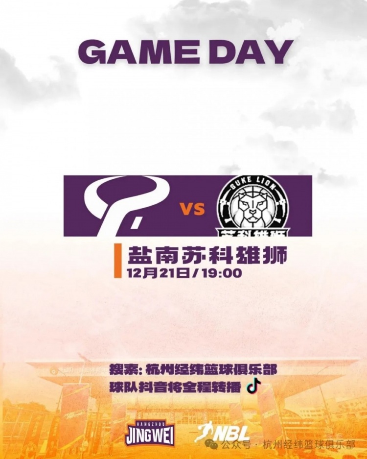 2025年12月21日,2025-2026赛季NBL联赛常规赛第1轮,杭州经纬主场迎战盐南苏科雄狮。