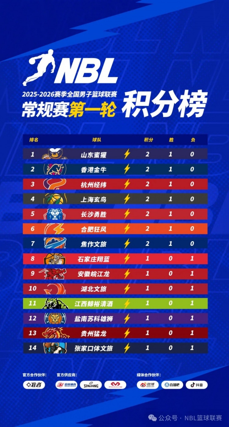 2025-2026赛季NBL联赛于12月20日拉开战幕,常规赛首轮比赛于12月22日全部战罢。