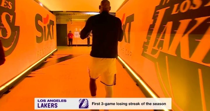 GIF-詹姆斯返回更衣室,字幕给的是湖人赛季首次三连败!