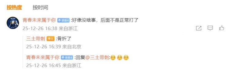 12月26日讯 据媒体人@三土带刺 报道,孙铭徽遭遇鼻骨骨折。