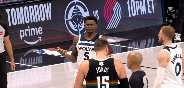GIF-约基奇准备罚球,华子伸手扒拉一下,约基奇抱怨,华子说那咋了?裁判这里没吹罚。