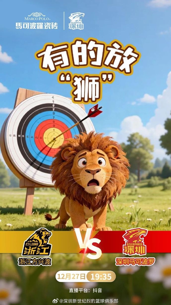 12月27日19:35,CBA常规赛第7轮战火升级,深圳马可波罗将奔赴客场,与卫冕冠军浙江方兴渡展开强强对话。届时抖音视频将进行直播。