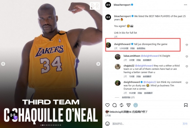 BR评本世纪最佳阵容!霍华德现身评论区:你们都不尊重这项运动