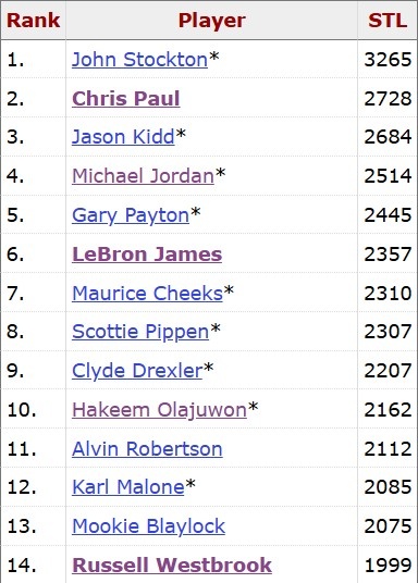 威少常规赛生涯总抢断突破2000大关 NBA历史第14人