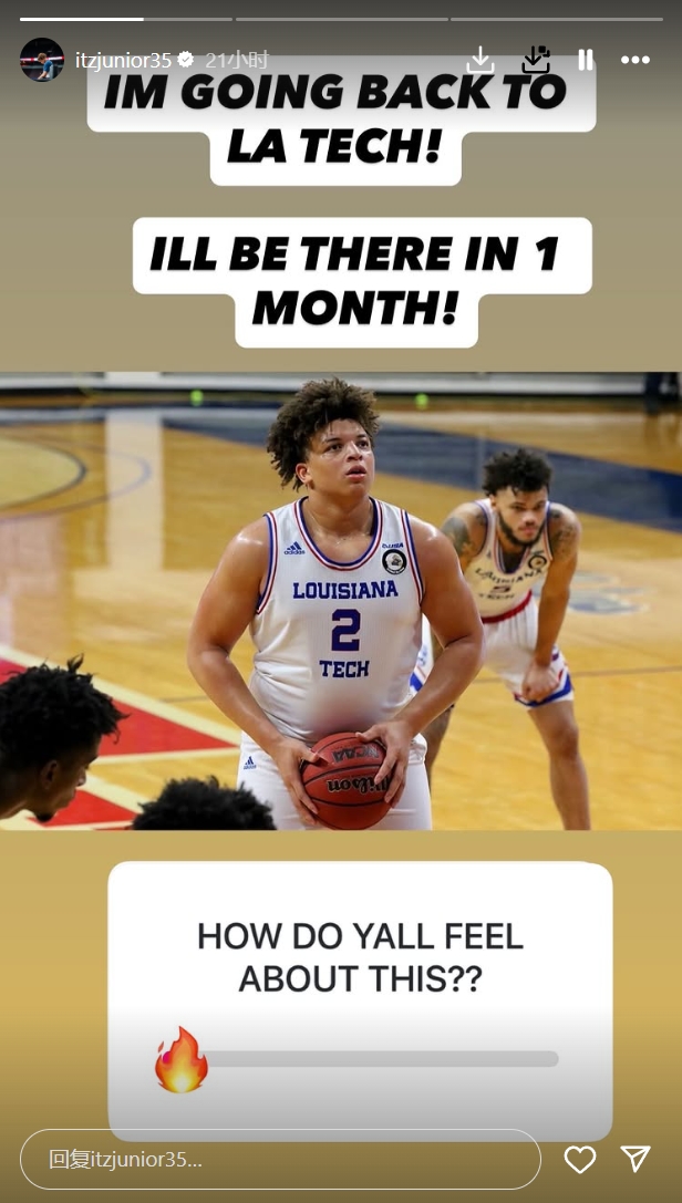 洛夫顿近期在自己的个人Instagram故事宣布, 他将回到自己的大学母校路易斯安那理工大学,洛夫顿写到:“我会回到LA TECH,我一个月后就会回到那儿。”