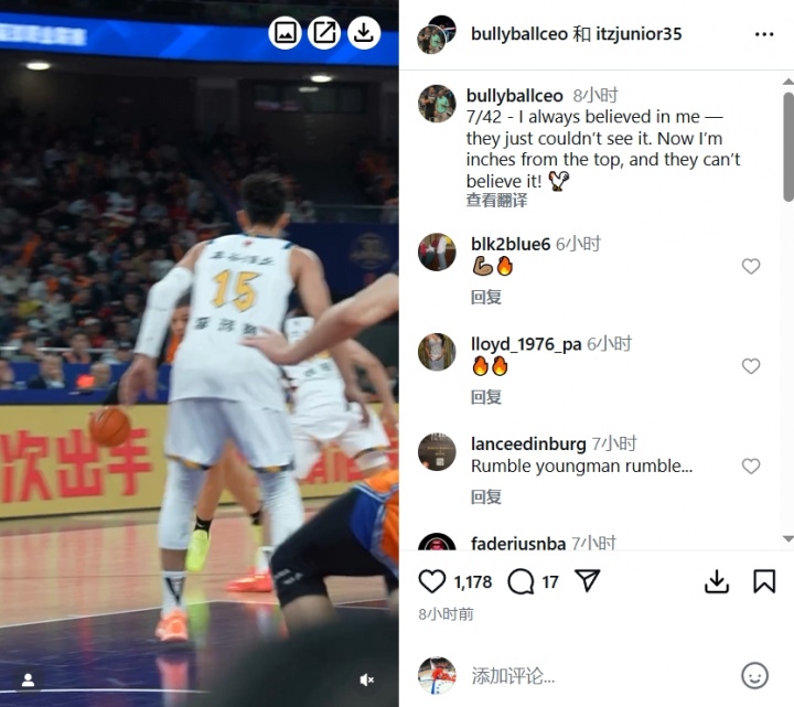 随后他还更新Instagram,写道:“7/42,我永远相信我自己,但他们就是不信。我离自己的巅峰状态只有一点点距离,但他们就是不相信我!”