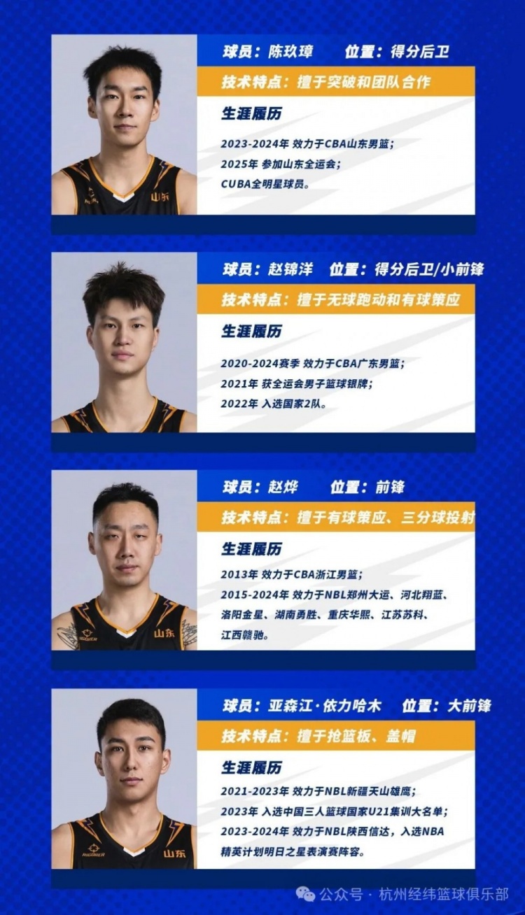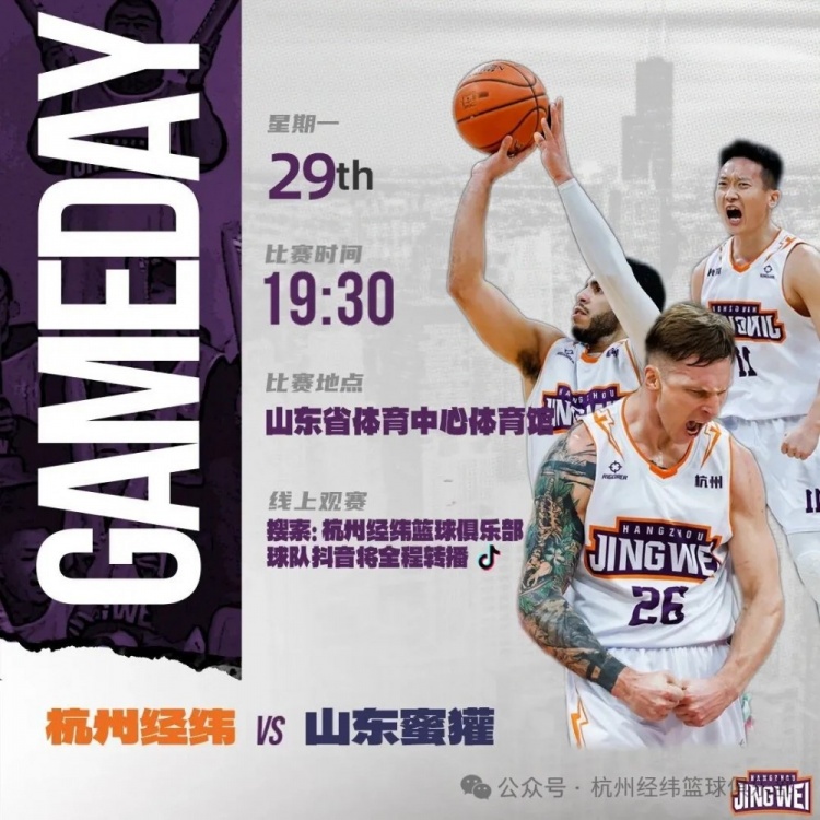 2025年12月29日19:30,2025-2026赛季NBL联赛常规赛第4轮,杭州经纬将在客场挑战山东蜜獾