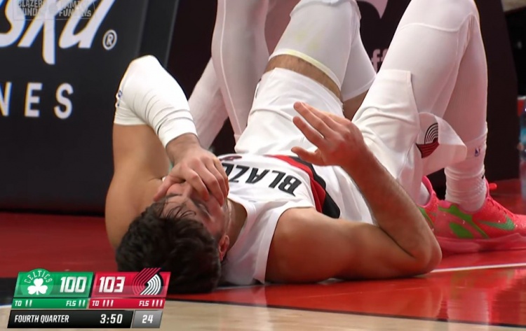 躺了好久!杰伦·布朗上篮肘到阿夫迪亚脸部 裁判回看给一级恶意