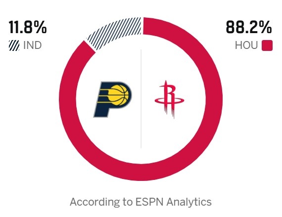 ESPN预测明天胜率:火箭88.2%占据大优势 步行者11.8%