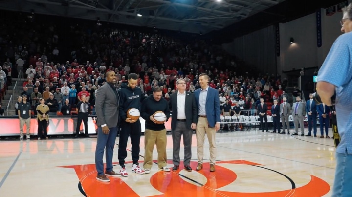 梦开始的地方!库里回到戴维森学院引全场欢呼 上脚AJ6胭脂
