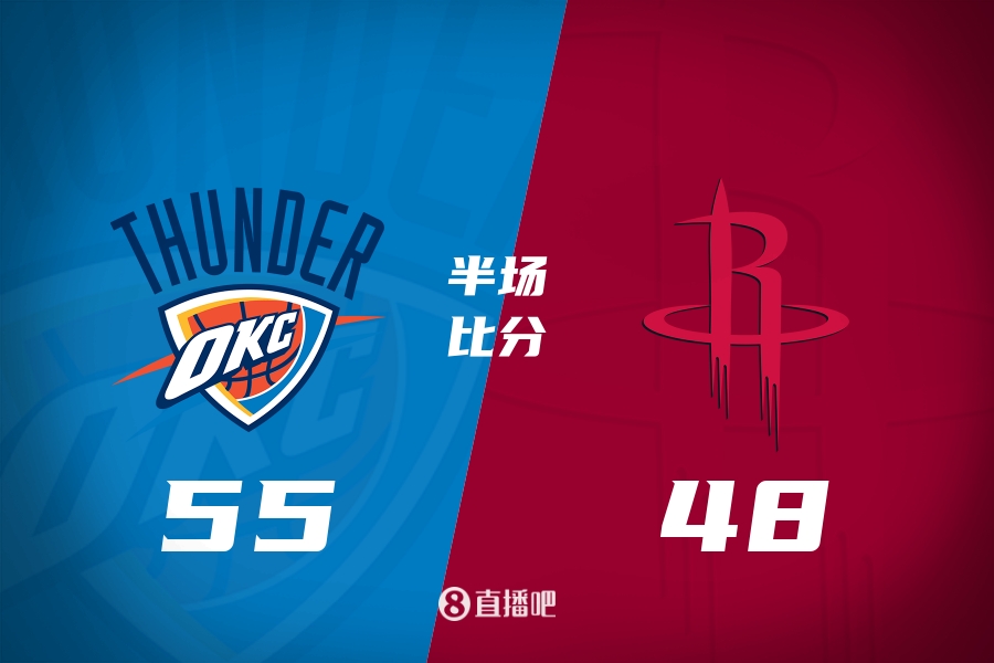 杜兰特13中3 SGA单节10分 火箭13个前场板半场落后雷霆7分!