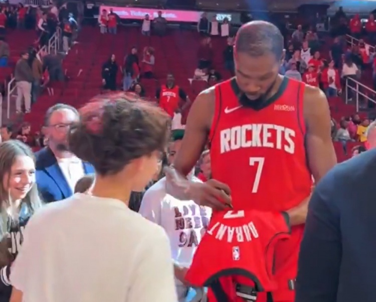 GIF-杜兰特赛后与对手、队友、球迷互动1月17日讯 NBA常规赛,火箭在主场以110-105击退森林狼。此役,火箭球星杜兰特出场40分01秒18投11中,三分8中6、罚球14中11,砍下39分4篮板7助攻2抢断1盖帽。赛后,杜兰特频繁互动,迟迟未离开。
