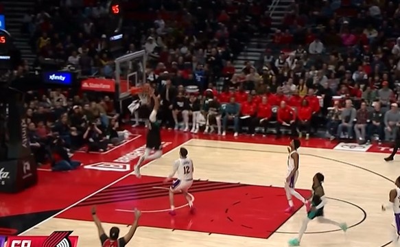三分超级准!凯莱布·乐福半场三分4中3射落11分 送半场超远空接