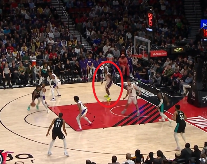 诶哥们你人呢?詹姆斯大意防空气!卡马拉溜底线命中超大空位三分