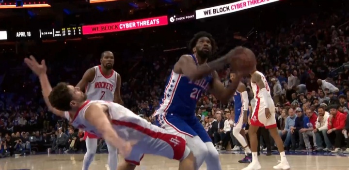 GIF-恩比德首次撞飞申京