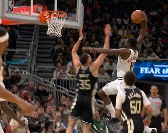 投不进就砸!哈达威冲筐面对补防单臂砸扣 字母哥替补席神情落寞
