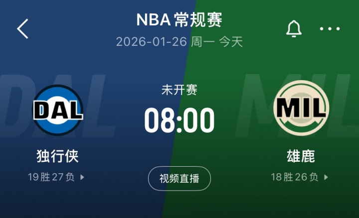01月26日讯 ESPN名记Shams报道,原定北京时间今日早晨8:00进行的雄鹿主场迎战独行侠的NBA常规赛,因天气原因推迟。Shams在社媒表示:由于天气原因,达拉斯独行侠队无法飞往密尔沃基,原定于今天在密尔沃基举行的独行侠队对阵雄鹿队的比赛已被推迟。这是今天第二场因天气原因推迟的NBA比赛。此前孟菲斯举行的掘金队与灰熊队的比赛已被推迟。