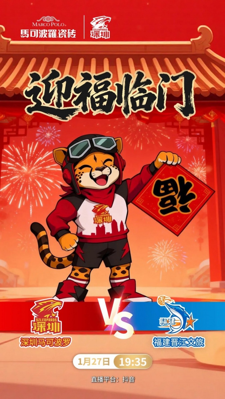 1月27日19:35,CBA常规赛第20轮,深圳马可波罗将坐镇深圳市体育中心体育馆,迎战福建晋江文旅男篮。这是球队春节前的最后一个主场,用一场酣畅淋漓的胜利,为深圳球迷送上最暖心的岁末祝福,正是全队此刻最坚定的目标!