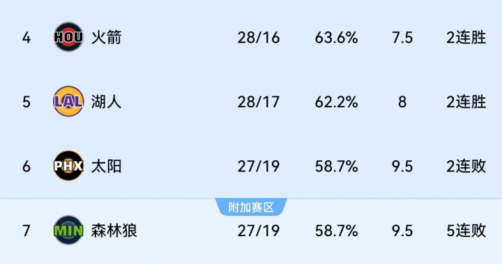 01月27日讯 NBA常规赛,湖人客场129-118战胜公牛。此役过后,湖人依靠二连胜将战绩提升至28胜17负,暂时稳居西部第五。目前,湖人凭借1.5个胜场差的优势领先西部第七森林狼,进一步逃离附加赛区;距离西部第四的火箭也仅有0.5个胜场!