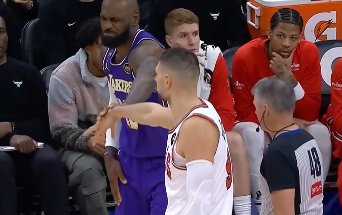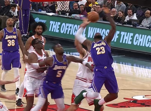 友好击掌!詹姆斯上篮被武切维奇拉下 前者不适一直扭肩膀