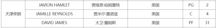 取消克莱伯恩的注册后,天津男篮目前是三外援配置,哈姆雷特、雷诺兹和大卫·詹姆斯。