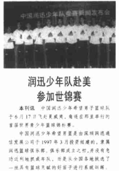 这批14岁上下身高1.90左右的球员后来被深圳队命名为“希望队”,润迅在他们身上可谓下了血本,不仅将他们送到美国特训,还特别为他们聘请了外教,参加各种高水平比赛。
