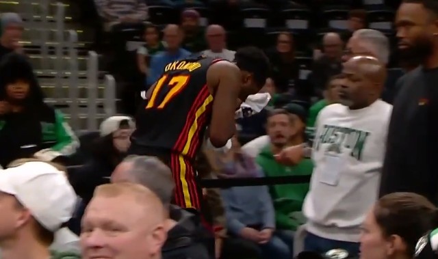 硬汉!奥孔武被布朗肘到&满嘴是血 回更衣室后又回来罚球