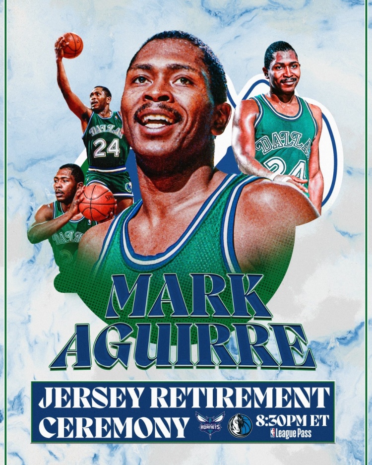 1月30日讯 早上9点30分,独行侠主场对阵黄蜂。独行侠将在今日比赛中场休息时退役名宿马克·阿吉雷的24号球衣,NBA官方也对此进行了预热。NBA官方写道:24号球衣将会悬挂在达拉斯球馆的顶棚!马克·阿吉雷在1981年选秀大会被独行侠用状元签选中,生涯一共在独行侠效力了8个赛季,出战566场常规赛,场均得到24.6分5.7篮板3.8助攻0.9抢断0.4盖帽,投篮命中率49.2%,三分命中率30.5%,罚球命中率74.2%,生涯共入选3次全明星阵容。