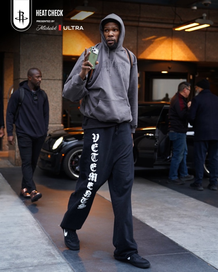 偏暗深色系!火箭众将穿搭:KD灰色连帽衫 申京&小谢&阿门全身黑
