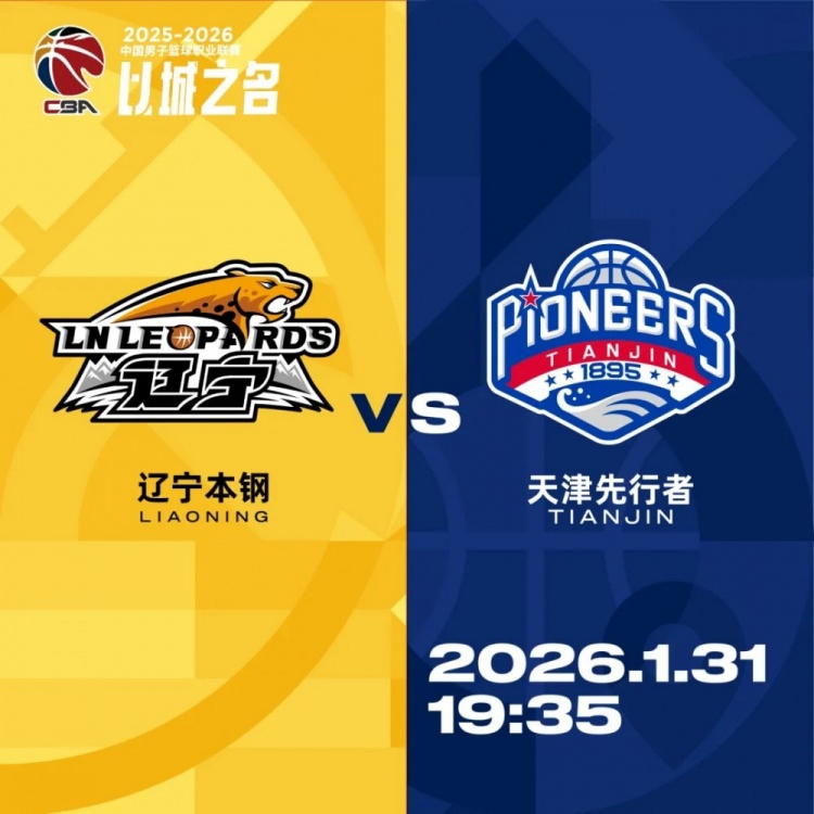 1月31日,2025-2026赛季CBA常规赛第22轮,天津先行者将客场挑战辽宁本钢。本场比赛为CBA潜力赛场次,天津5、抖音平台将进行直播。此番与辽宁迎来二番战,期待先行者有更多球员挺身而出,延续良好的攻防状态,将主场的专注度与执行力带到客场,全力争胜。