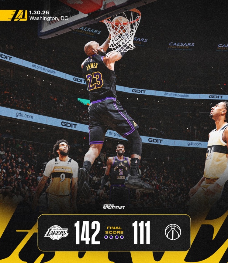 1月31日讯 今日,湖人142-111客场大胜奇才。赛后,湖人前锋詹姆斯更新了Instagram Story。