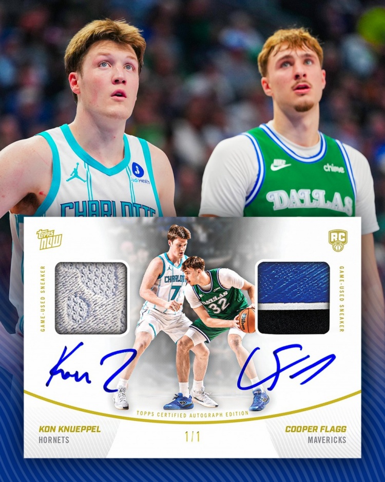 1月31日讯 昨日NBA常规赛,独行侠在主场以121-123不敌黄蜂。赛后,表现出色的新秀球员弗拉格和克尼佩尔,两人的球鞋第一时间被裁切制作成了1of1的球星卡。此役,独行侠状元秀弗拉格出战38分钟,投篮29中20,三分5中3,罚球6中6,得到49分10篮板3助攻1盖帽;克尼佩尔出场36分钟16投10中,三分12中8、罚球6中6砍下34分4篮板3助攻1抢断。