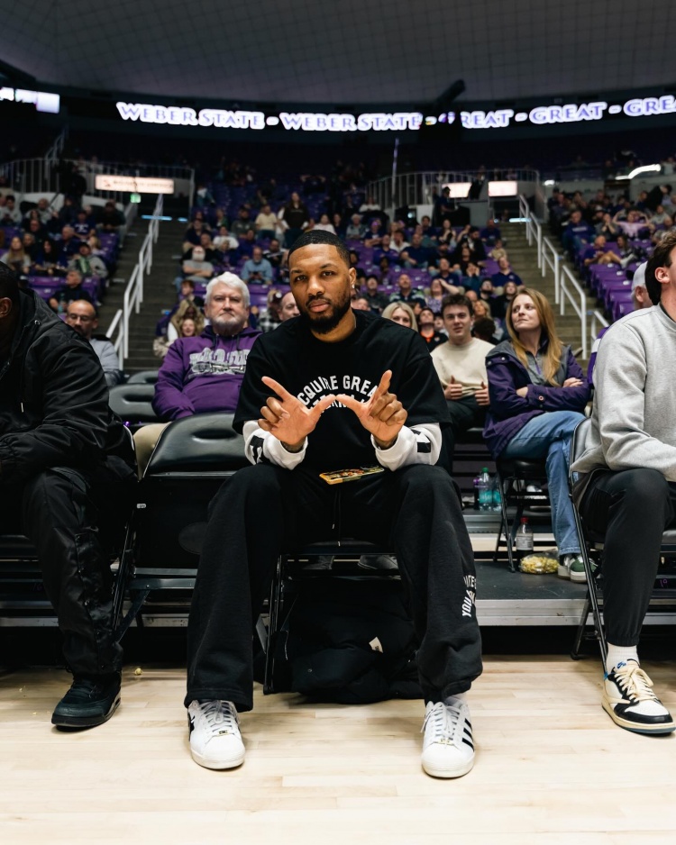 利经理来视察了!利拉德回母校韦伯州立大学看球!