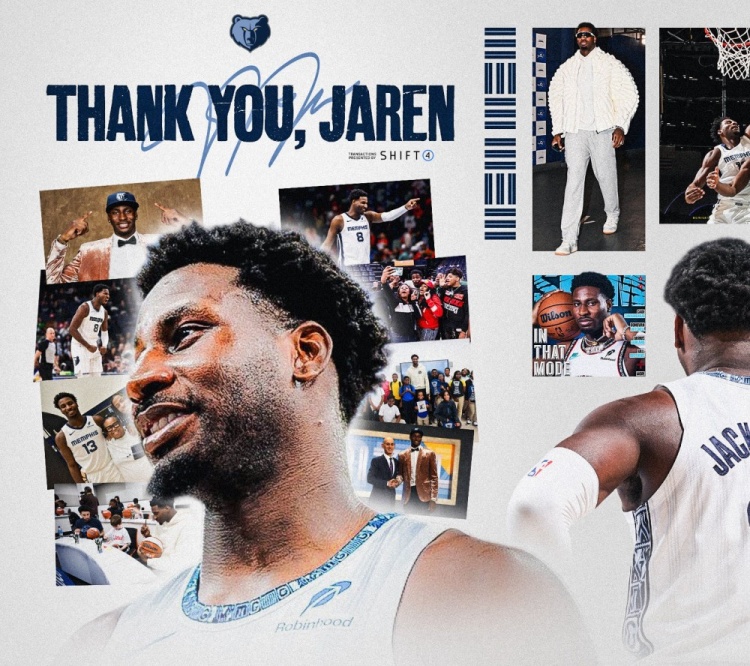 灰熊官推随后晒图,感谢小贾伦·杰克逊八年来为灰熊所做的贡献。官推列举了期间小贾伦获得的荣誉:最佳新秀一阵、两次全明星、两届盖帽王、三次最佳防守阵容、一次最佳防守球员。